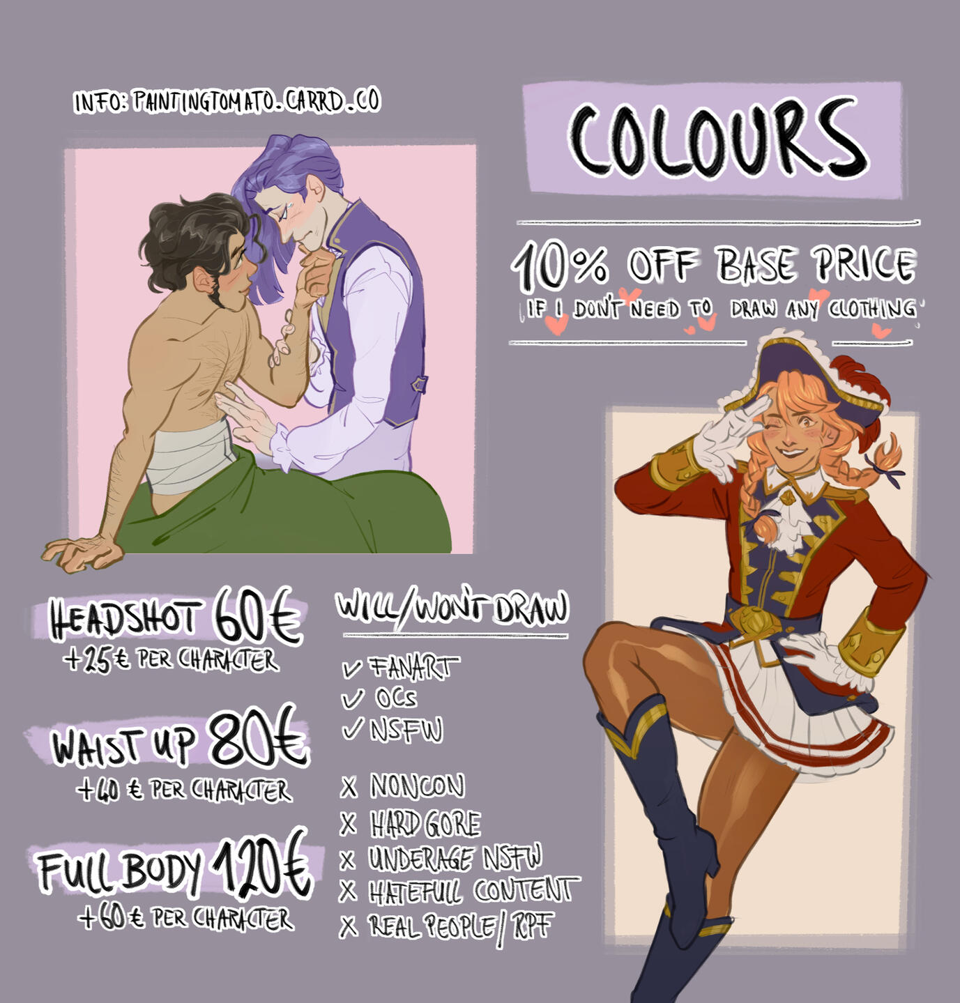 All commissions are for personal use only. This includes icons/headers, posting it to your social media, and printing it out for personal use/display.